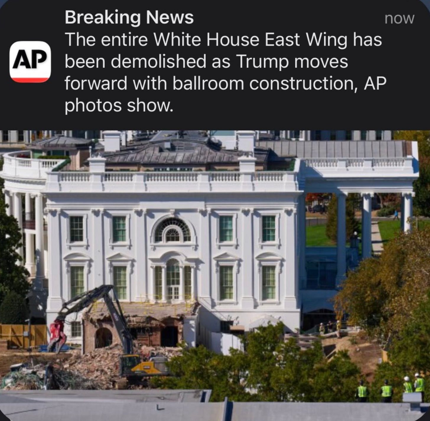 we don’t yet have poll numbers on Donny’s desecration of East Wing, but you know that none of what’s going is likely to be popular.
