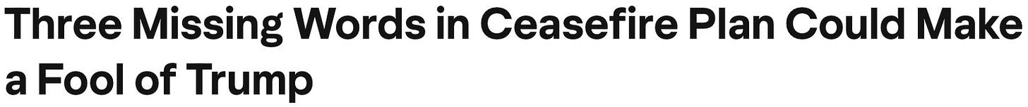 apparently, what happened is that Donny is a fucking moron who impulsively agreed to a ceasefire without really understanding what the terms were — which is pretty much Donny’s entire business model, to act first and think never.