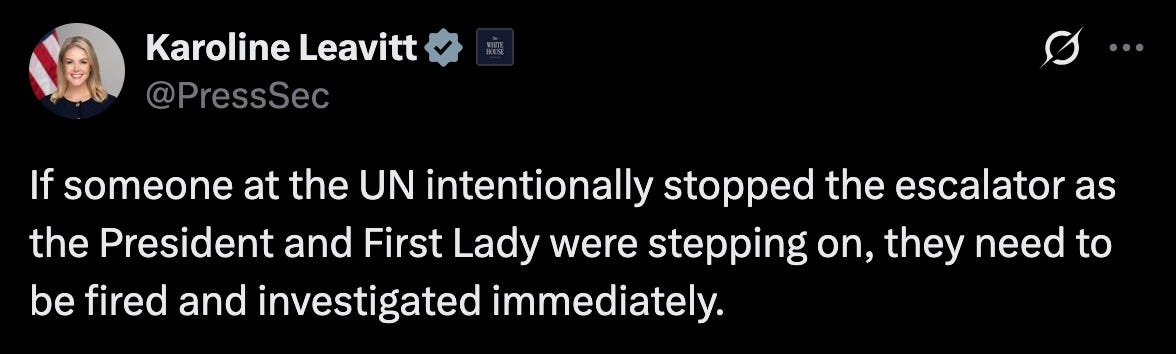 “If someone at the UN intentionally stopped the escalator as the President and First Lady were stepping on, they need to be fired and investigated immediately.”