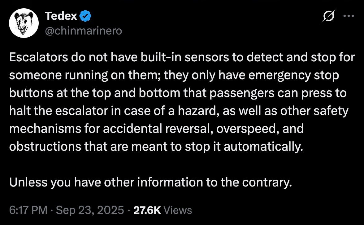 naturally, the I Did My Own Research crowd immediately transformed into experts in escalator technology.