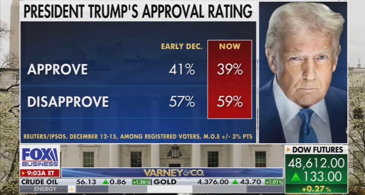 clearly, Donny and his handlers are in full panic mode. his approval numbers are in the shitter — so much so that even his own party is beginning to openly defy him. even Fox News can’t hide how toxic Donny’s become.