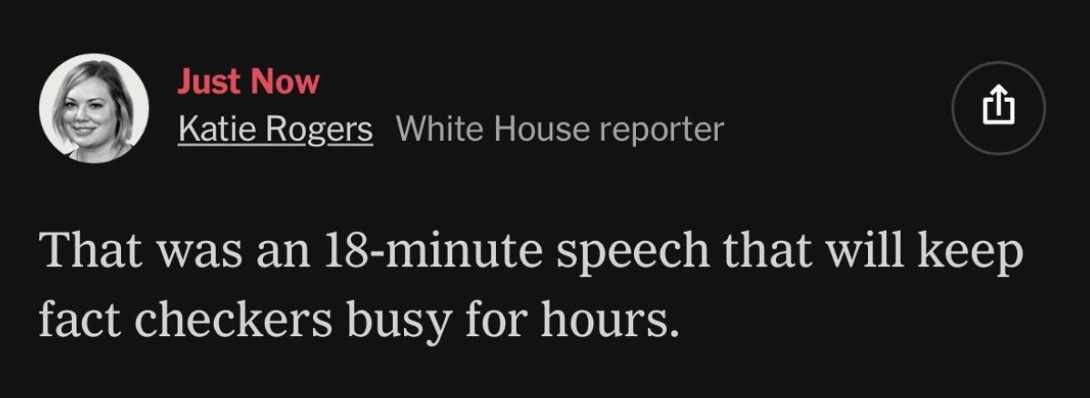 Said right-wing blogger Matt Walsh on X: “That was perhaps the most pointless prime time presidential address ever delivered in American history.”