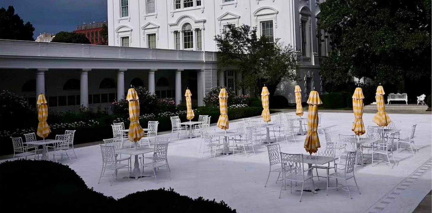 speaking of gaudy, here’s the most-recent photo of that abomination that they’re still calling the Rose Garden. the cement slab has now been festooned with patio tables.