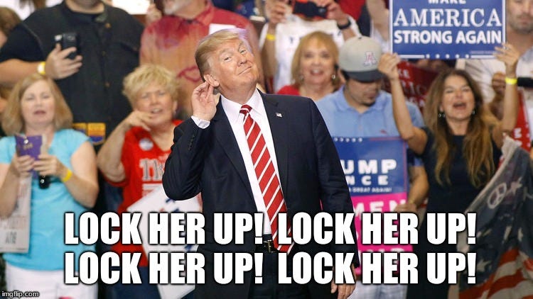 but here’s another much more important set of questions: why is Donny being so nice to Bill Clinton? and why is Donny suddenly so lovey-dovey with the Woman Formerly Known As Crooked Hillary? what the fuck? come on, Donny’s spent ten whole years chanting ‘lock her up’ at every rally.