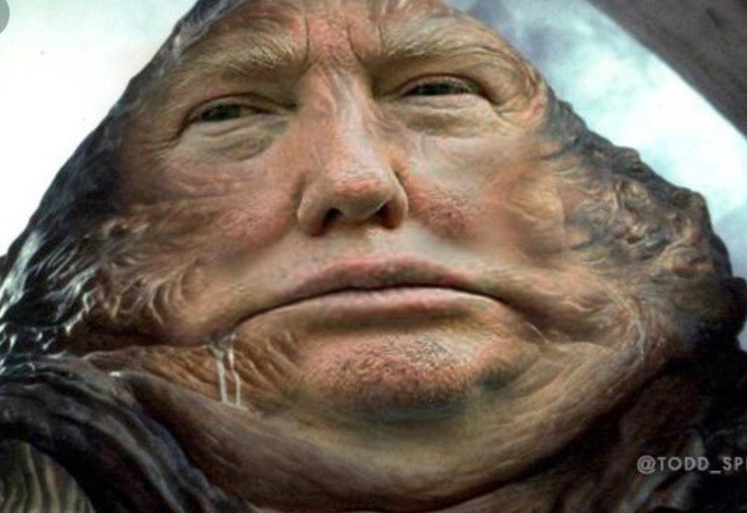 have you noticed that Donny no longer does solo pressers in the Oval Bordello? now it’s always some big production, with frail old Donny sitting at his desk and a dozen or more flunkies standing behind him. and the flunkies do most of the talking, while President Droolbucket sits there looking disengaged at best — and at worst, fast asleep.