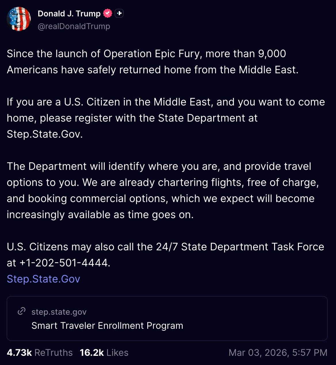 oh look, Donny (or more likely, some flunky with access to his social media) helpfully posted a State Department phone number that stranded Americans can call.