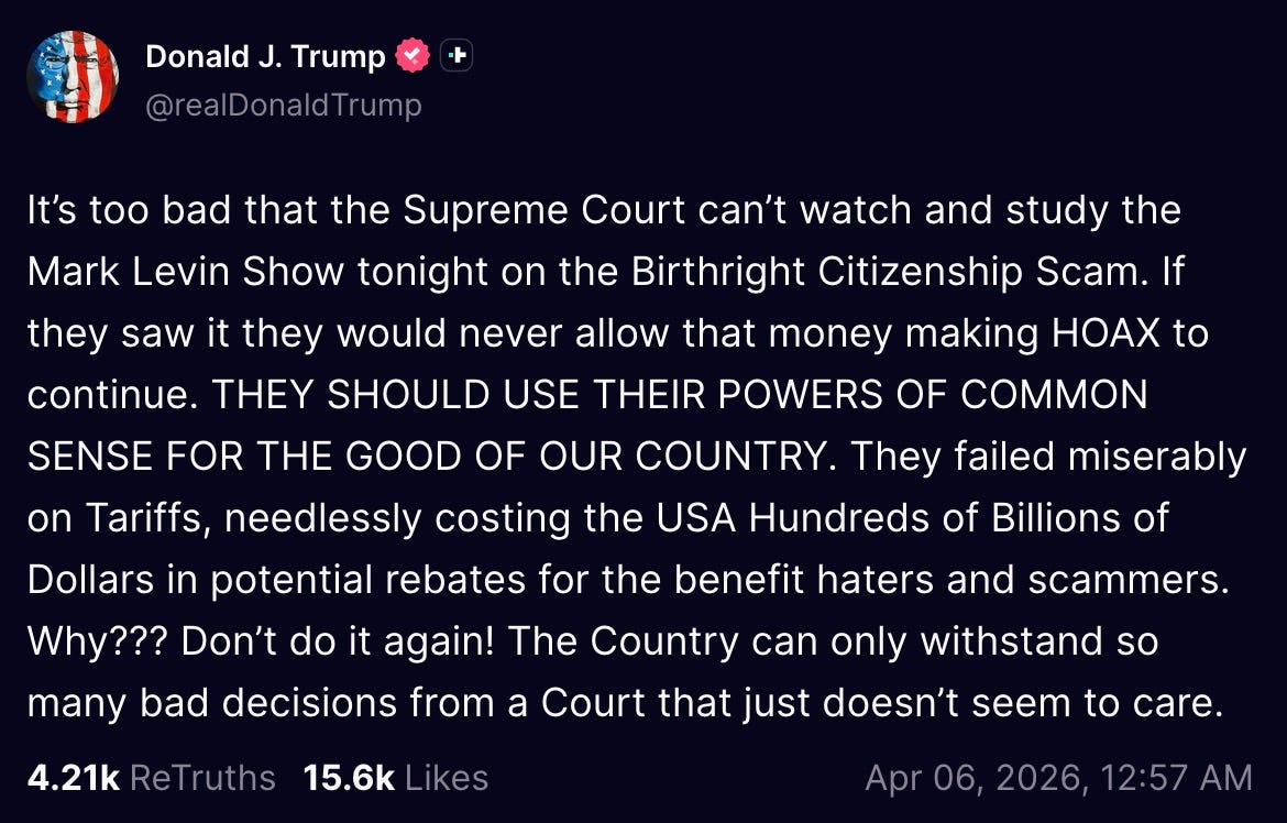 meanwhile, the raccoons that live inside Donny’s head continue to gnaw through every wire at random. last night, he was up well past midnight, whining about the Supreme Court.