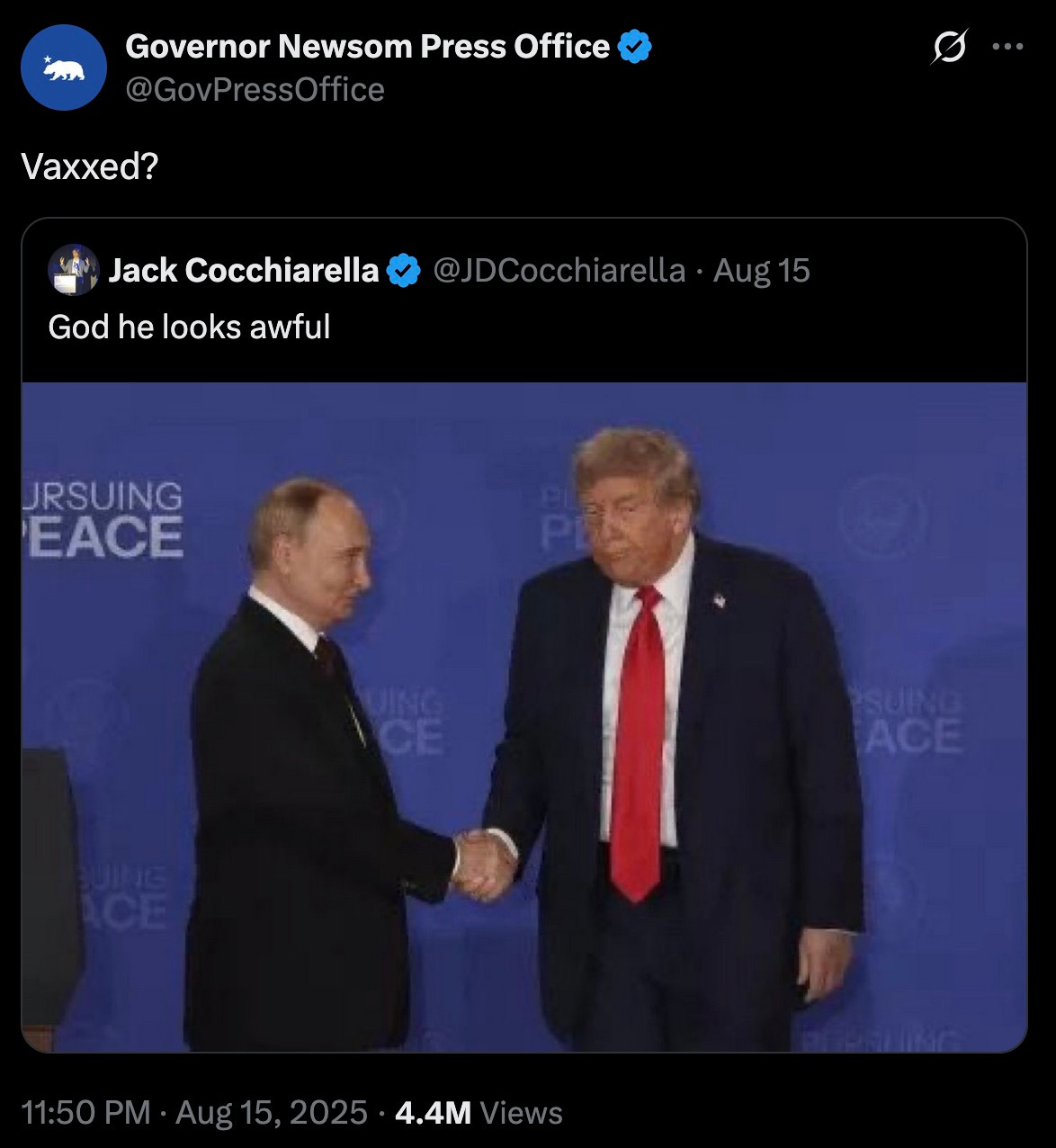 once again, let’s give the final word to Governor Newsom’s press office, because they’re just so fucking good at trolling Donny.