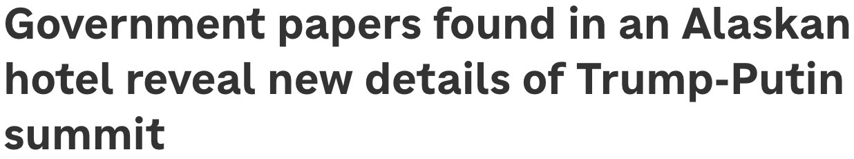 Papers with U.S. State Department markings, found Friday morning in the business center of an Alaskan hotel, revealed previously undisclosed and potentially sensitive details about the Aug. 15 meetings between President Donald Trump and Russian President Vladimir V. Putin in Anchorage.