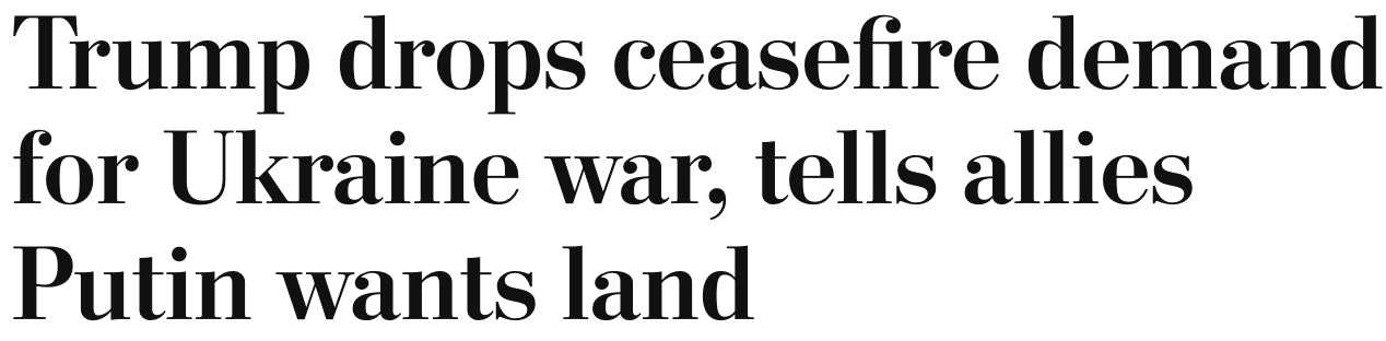 BRUSSELS — President Donald Trump dropped his demand for a ceasefire in Ukraine and told its president Saturday that Russian President Vladimir Putin wants Ukraine’s eastern Donbas area in exchange for halting the war.