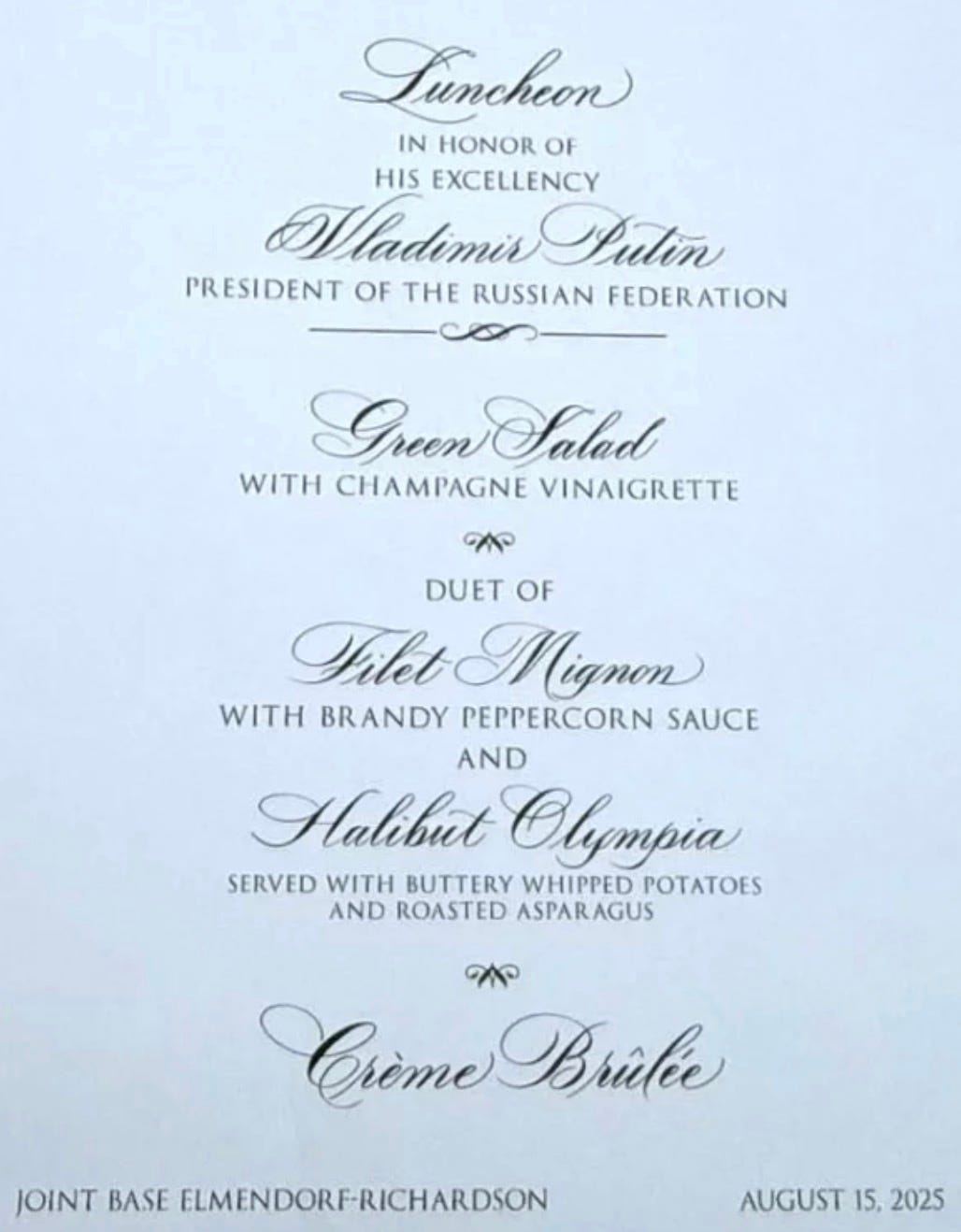 how nice, while you’re forced to make do with your two government-approved dolls and five pencils, “his excellency” (barf) Vladimir Putin gets filet mignon and halibut — oh, and a salad, because even a despotic war criminal should have a balanced diet.