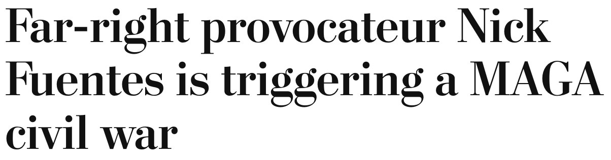 The resurgence of the 27-year-old Fuentes, who has argued that immigrants and “organized Jewry” are conspiring to extinguish the white race, has set off bitter infighting among conservative influencers over whether he should be tolerated or denounced.