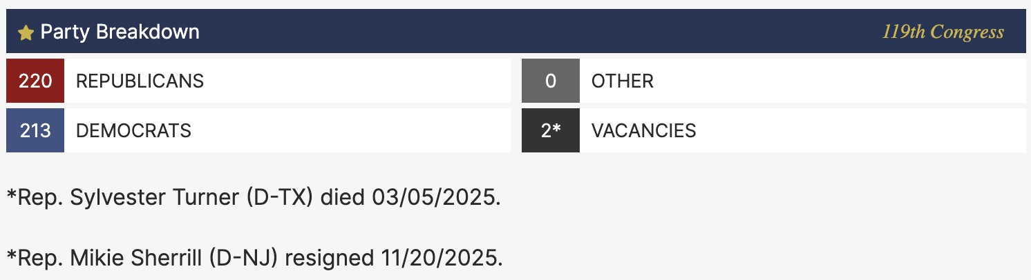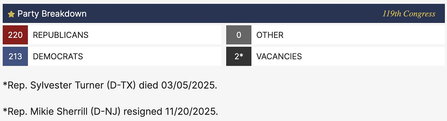 with Madge sporking her way out of Congress next month, the Republican barely-a-majority in the House will drop to 219 — making it that much harder for Holy Mike to inflict his Christofascist fuckery on We the People.
