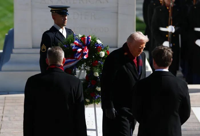 yesterday, Preznit Fuckwit traveled to Arlington National Cemetery and laid a wreath on the Tomb of the Unknown Soldier Who Didn’t Have A Rich Father To Get Him Out Of War By Paying A Quack Doctor To Gin Up A Bullshit Note About Imaginary Bone Spurs.