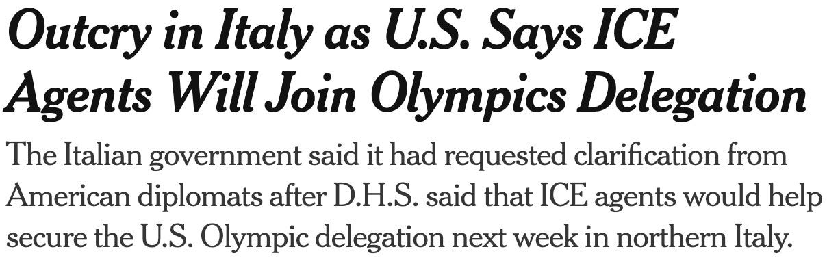 while we’re on the subject of ‘international incidents,’ can somebody please explain to me why we’re sending masked ICE thugs to Italy? explain it to me like I’m five years old — because this makes no goddamned sense.
