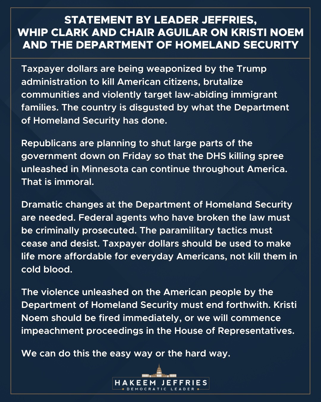 here’s the beauty part: House Democrats threw Donny’s own mob-boss language back in his face, closing their statement with ‘we can do this the easy way or the hard way.’