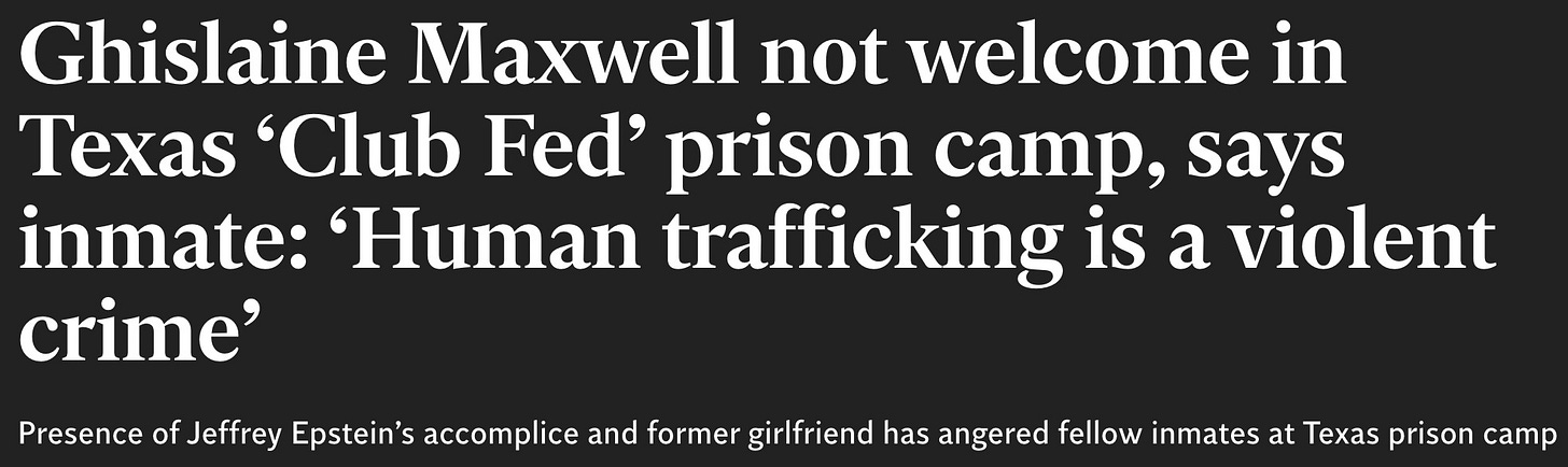 oh, so the minimum-security prison isn’t minimum-security any more. I’ll bet Ghislaine’s fellow prisoners must over the fucking moon about that.