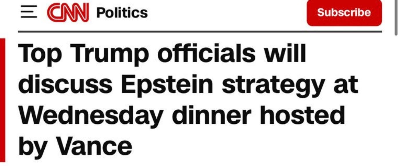 hey, remember that meeting that was supposed to take place at Couchfuck McGee’s house last night, where the Attorney General, the Deputy Attorney General, the White House Chief of Staff, the FBI Director and the Vice President were all going to get their stories straight about the Epstein Files? you know, just a perfectly normal thing that happens in any administration, when your the president has a dead-pedo-bestie problem that just won’t go away.
