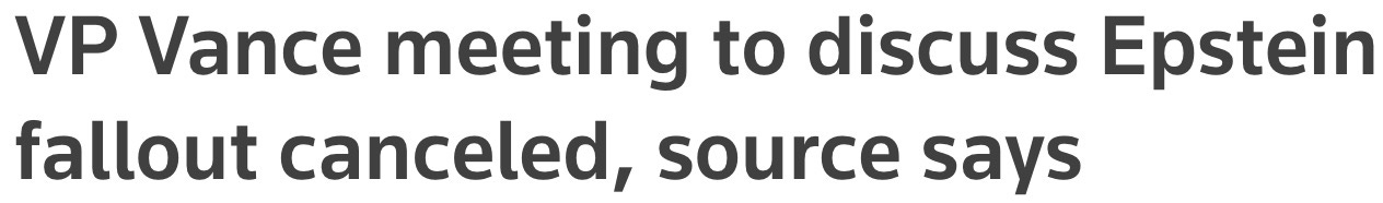 Vance: “I saw a report today, and it’s completely fake news, we’re not meeting to talk about the Epstein situation, and I think the reporter who reported it needs to get better sources.”