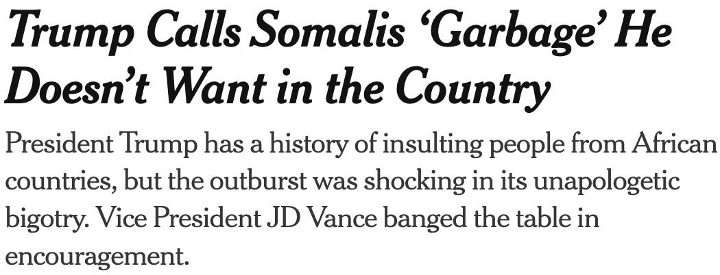 if you took Donny’s rant and substituted ‘Jews’ for ‘Somalis,’ it would sound exactly like something out of the Third Reich. it was that openly hateful.