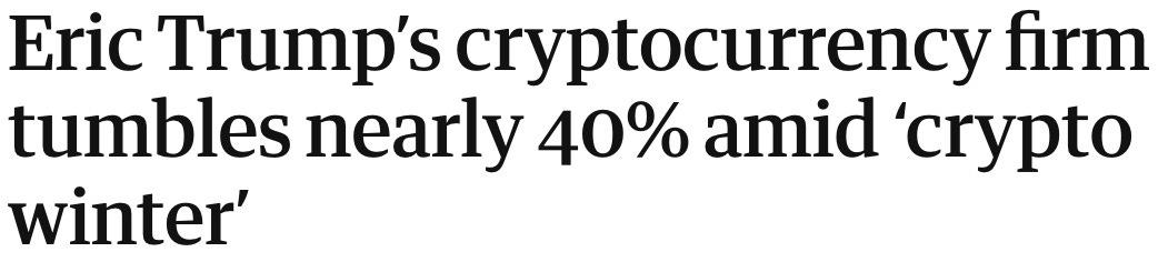 Shares in Eric Trump’s crypto mining business lost nearly 40% of their value in less than 30 minutes on Tuesday.