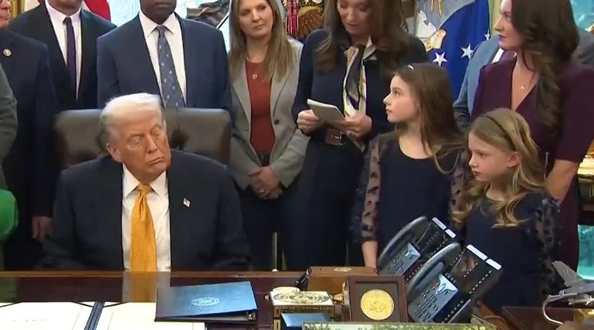 but wait — where was Donny? why wasn’t he in on this meeting to avoid a war? oh right, he was busy milksplaining. but this is where we are today: the United States President is too demented to be trusted with any important work — so his flunkies keep him busy signing nonsensical executive orders, while the actual business of running the country goes on around him.
