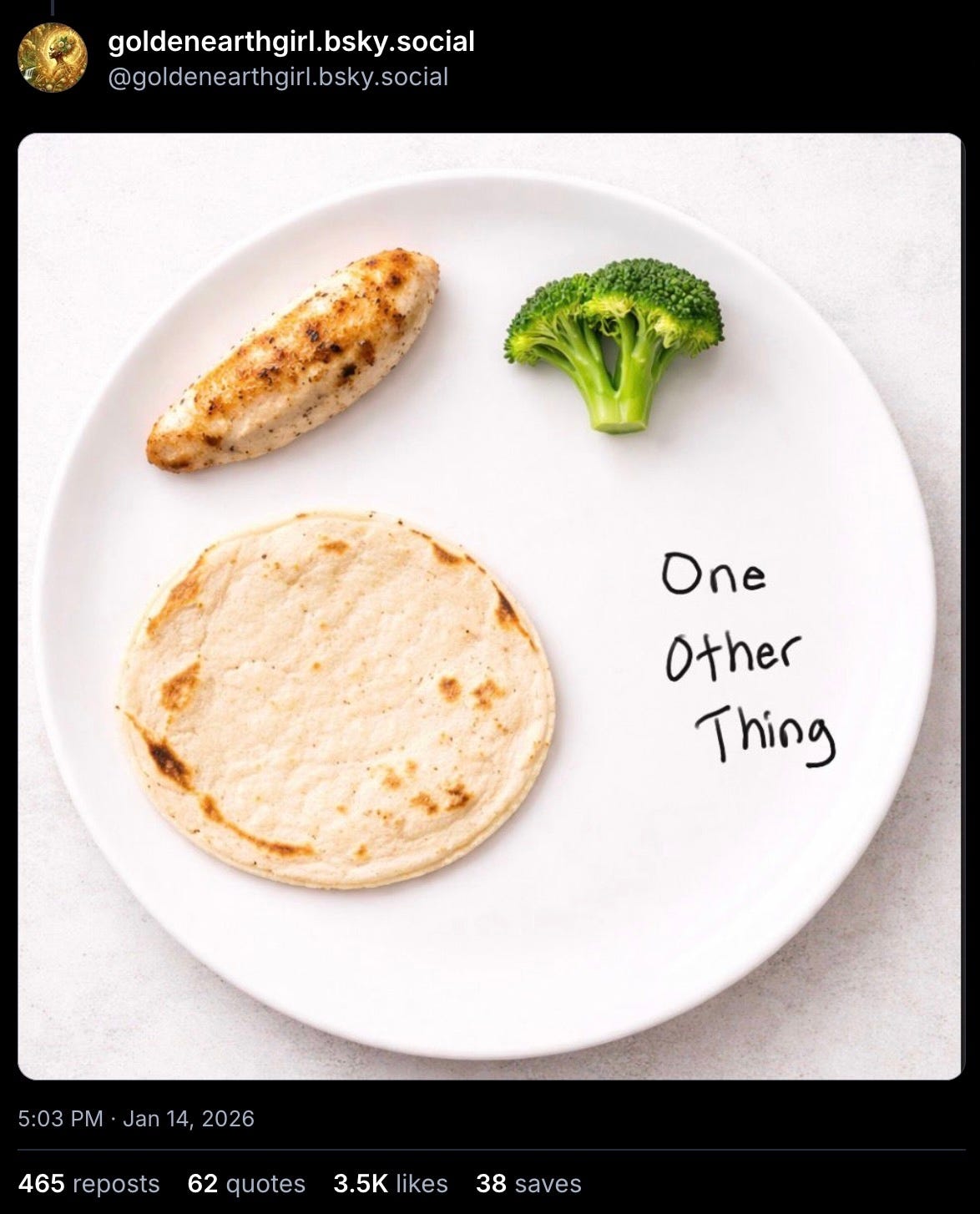 here’s helpful Bluesky user goldenearthgirl to illustrate just what our esteemed Secretary of Agriculture is recommending as a well-balanced meal.