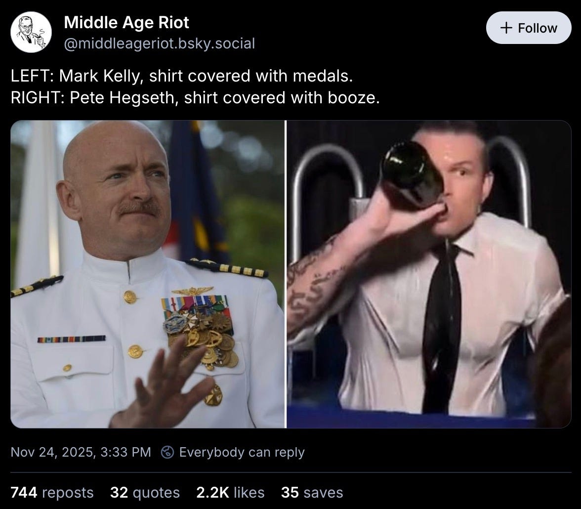 I stand with Ruben Gallego. let’s all stand with Reuben — and with Mark Kelly, and every other victim of Donny’s fucked-up presidency.