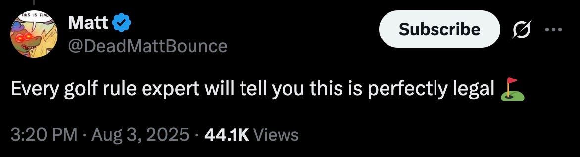 Cheaty McGolferpants got caught again, this time at his New Jersey ex-wife cemetery, where Donny miraculously won his eighteen millionth consecutive club championship.