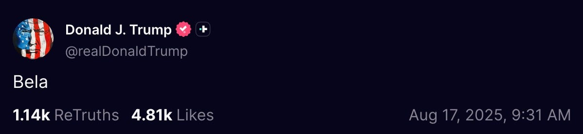 there is not one fucking reason on the planet why Steve Witkoff should be taking meetings with Vladimir Putin. Witkoff is not a seasoned diplomat. in fact, he’s not any kind of diplomat. he’s a real estate developer. he’s one of Donny’s New York slumlord cronies from back in the day — and here’s the funnest fact of all, via Heather Cox Richardson: this whole fucking debacle in Alaska happened because Witkoff doesn’t speak Russian.