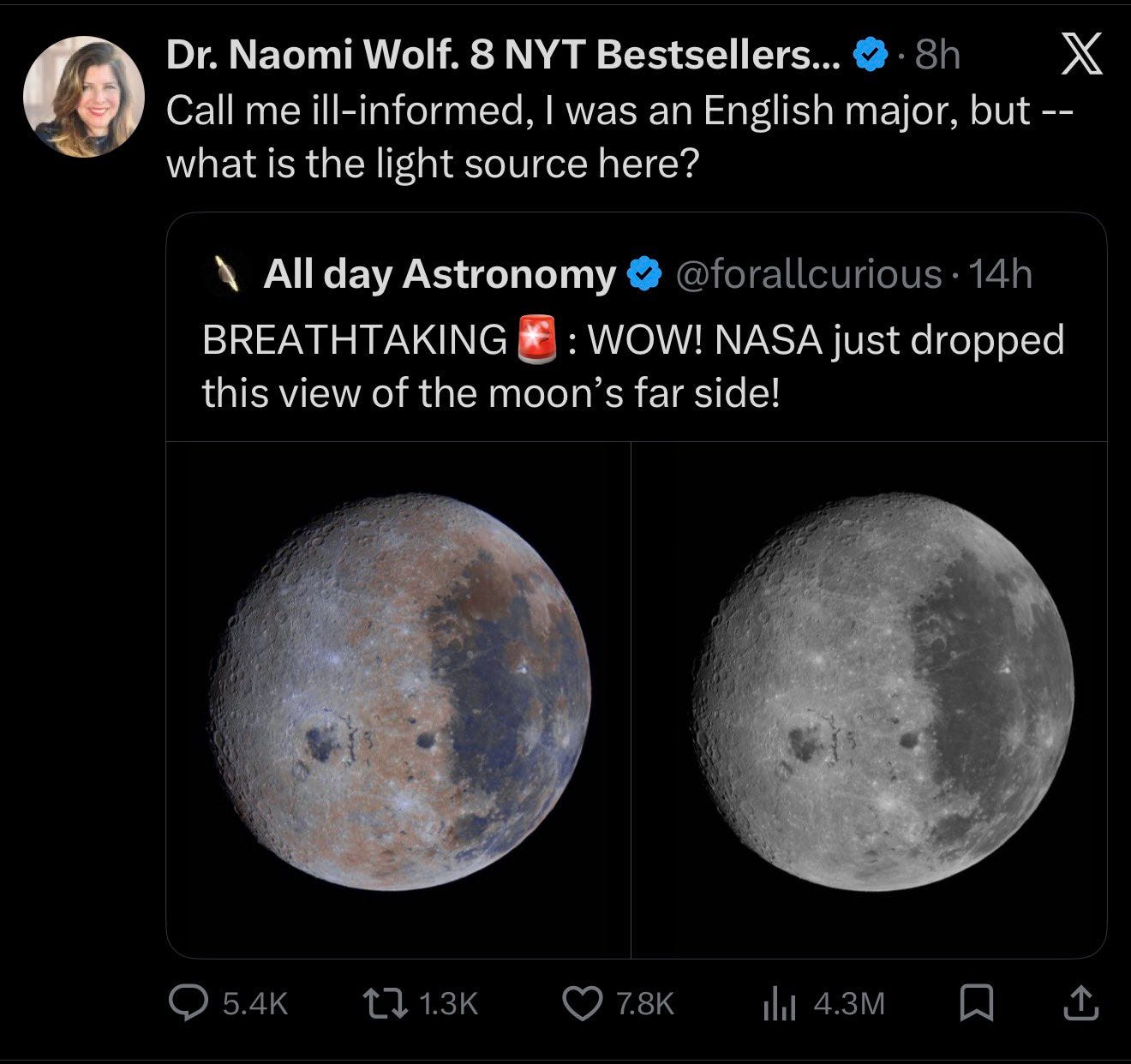 well, Dr. Wolf’s back, with a burning question about photos of the moon taken from the Artemis II spacecraft.