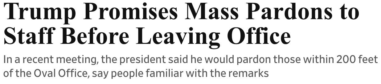 now here’s a fun thing we learned on Friday about the fucking idiot. apparently he’s promised to pardon anyone who’s come with ‘200 feet’ of the Oval Bordello.