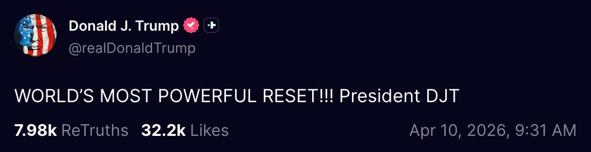 excuse me, but what is the ‘WORLD’S MOST POWERFUL RESET’? is that what the fucking idiot calls having his morning diaper changed?