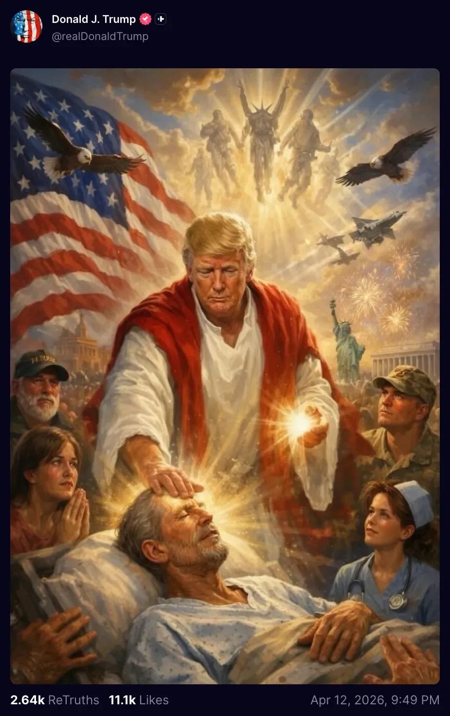 when Donny tarted himself up as some kind of fucked-in-the-head Doctor Jesus, actual religious leaders were horrified — but for the MAGA Evangelical Grifter-Industrial Complex, it was just another day at the office.
