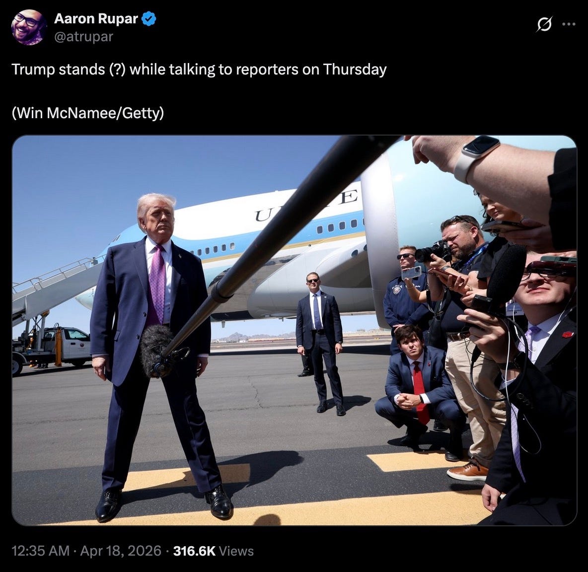 and, despite all that dumbfuckery going on right in front of their faces, not reporter stood up to ask ‘what the fuck is wrong with you?’