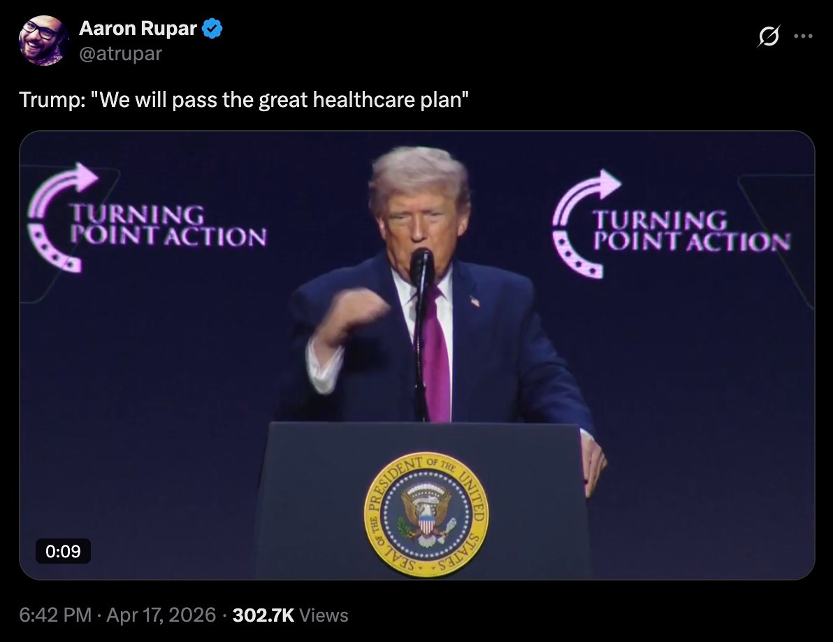 oh look, now that the fucking idiot has all that warmongering in the rear view mirror, he’s got all the time in the world to finally finish that ‘ready in two weeks’ healthcare plan he’s been working on for the last ten years.
