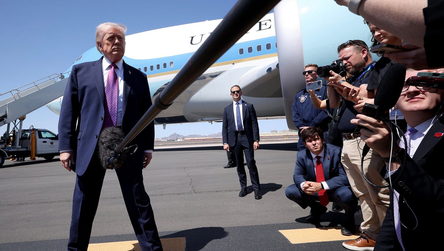 later on, while flying back to Washington aboard Fuckface Force One, reporters got to question the fucking idiot.
