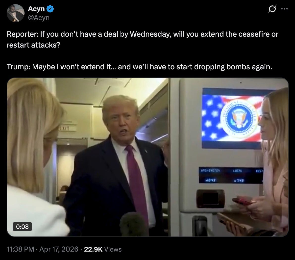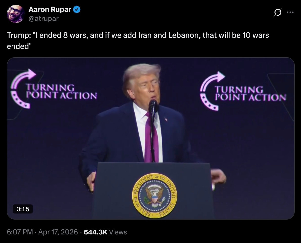 here’s another pro tip: you can’t really say you’ve ‘ended a war’ if in the next breath you blither incoherently about ‘dropping more bombs on Wednesday.’