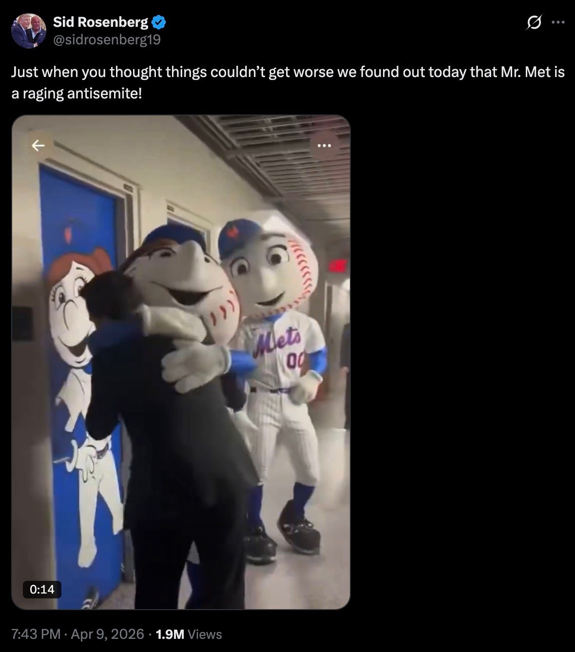 “Just when you thought things couldn’t get worse we found out today that Mr. Met is a raging antisemite!”