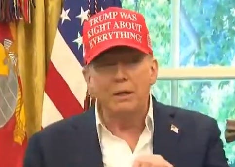 on Friday, some fucking idiot meandered into the Oval Office. befuddled and disheveled, the fucking idiot wore a stupid hat and an even stupider expression.