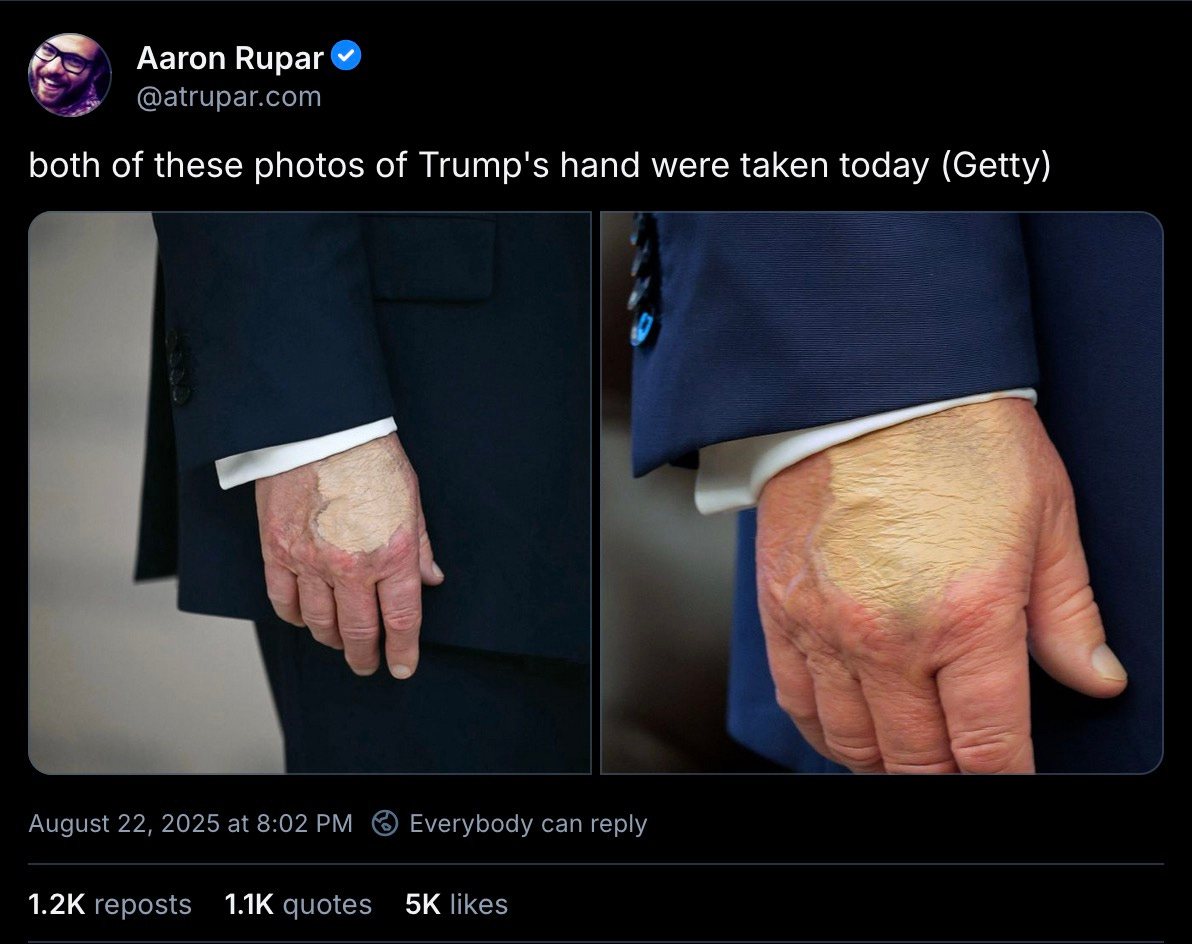 the fucking idiot’s right hand was, as usual, all fucked to shit from god-knows-what procedure — because as usual, the fucking idiot’s health is a huge State Secret.
