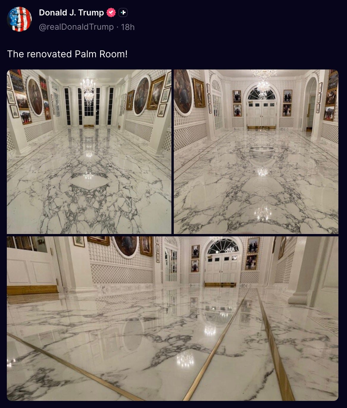 on what planet is turning a warm, friendly, sun-filled room into an antiseptic mausoleum any sort of improvement? it’s just one more abomination for the next president to put on their to-undo list.