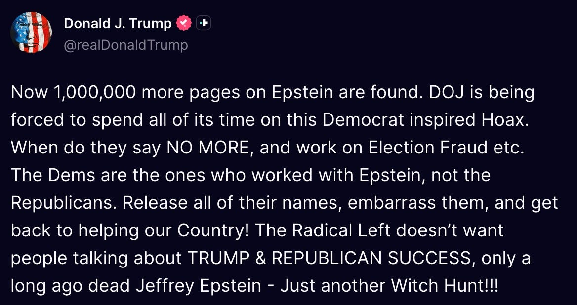oh, so we’re back to the Dead Pedo Bestie files being a ‘Democrat hoax,’ are we? then why did you sign the legislation mandating their release?