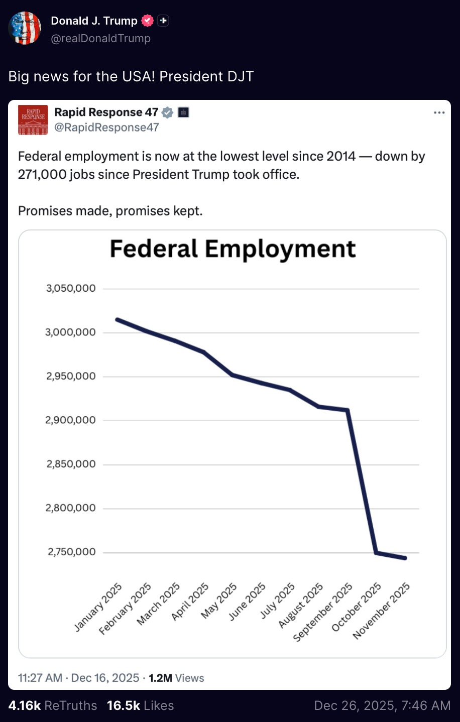 first, the fucking idiot bragged about having fired 200,000 American workers. merry Christmas, suckers!