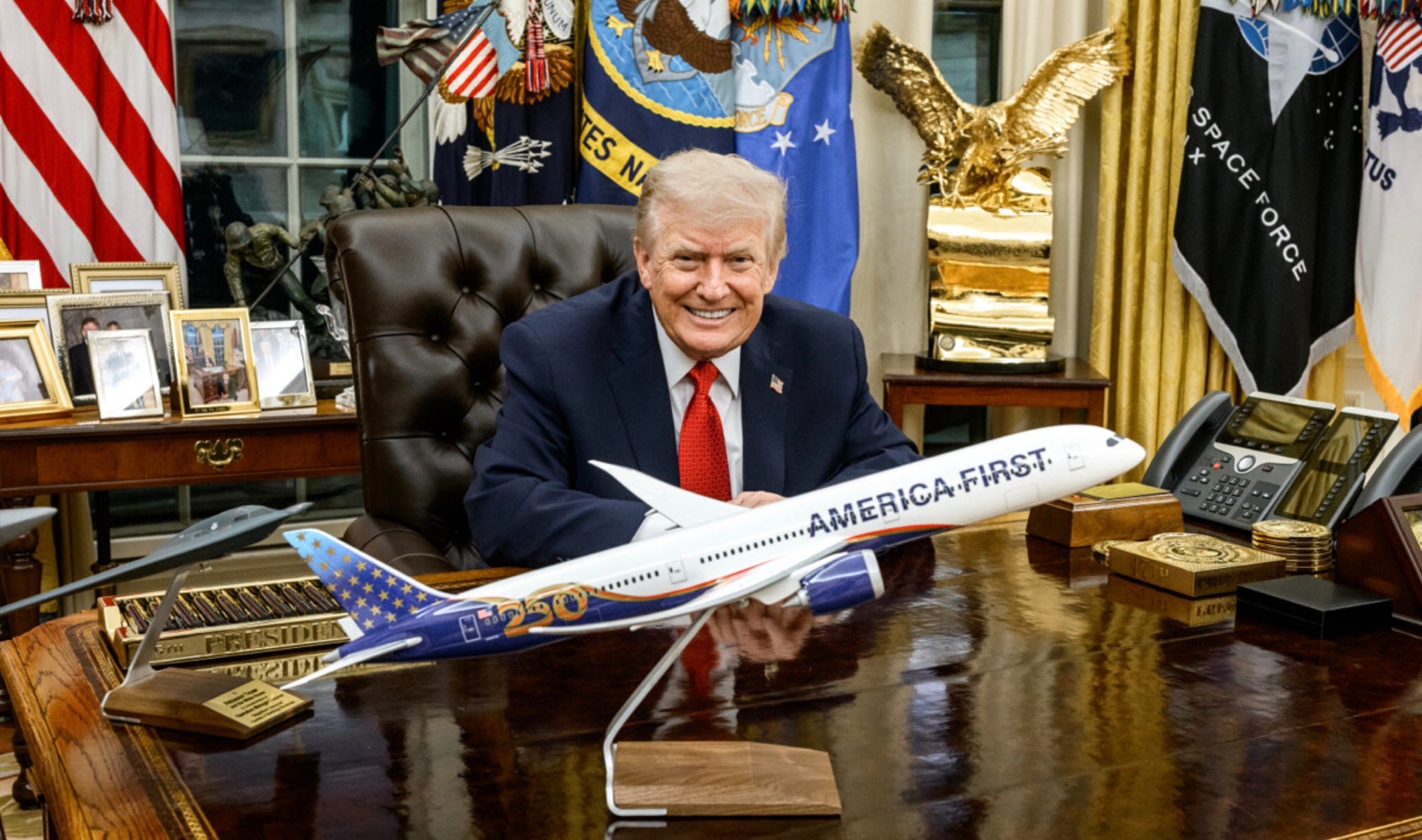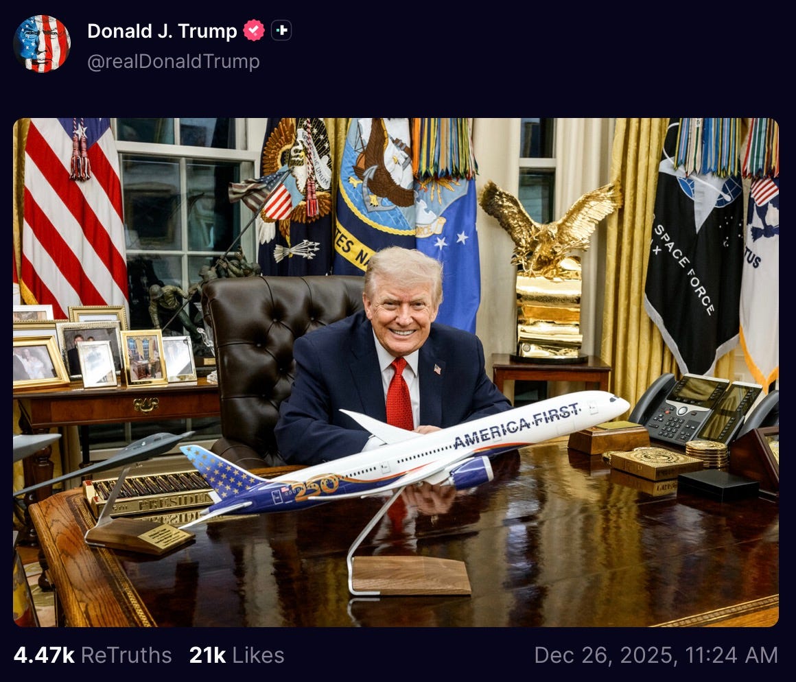 why? what’s the context? it’s a plane with the words ‘America first’ photoshopped onto it. of what relevance is this photo? the fucking idiot wasn’t at the White House yesterday, he was in his Florida golf motel. did the feral rats that live inside the fucking idiot’s head chew through the wrong wires again?