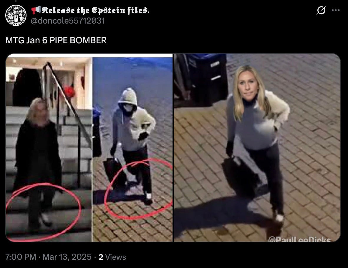 Thursday’s big news was the announcement that the person suspected of planting bombs at the DNC and RNC headquarters the night before January 6, 2021 had finally been apprehended. and — spoiler alert — it wasn’t (as so many on social media had hoped) a certain three-toed freak of nature.