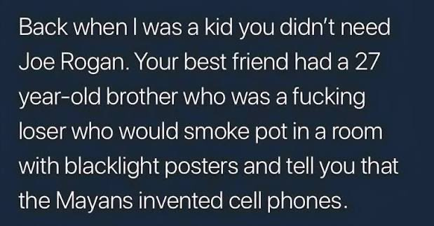 podcast bro Joe Rogan’s whole deal is that he’s a credulous meathead. he’ll sit there like a lump as some raving conspiracy loon barks out the batshittiest fever-swamp hallucinations imaginable — after which Joe will nod his head, take a long drag off a joint, and go ‘huh. I didn’t know that.’