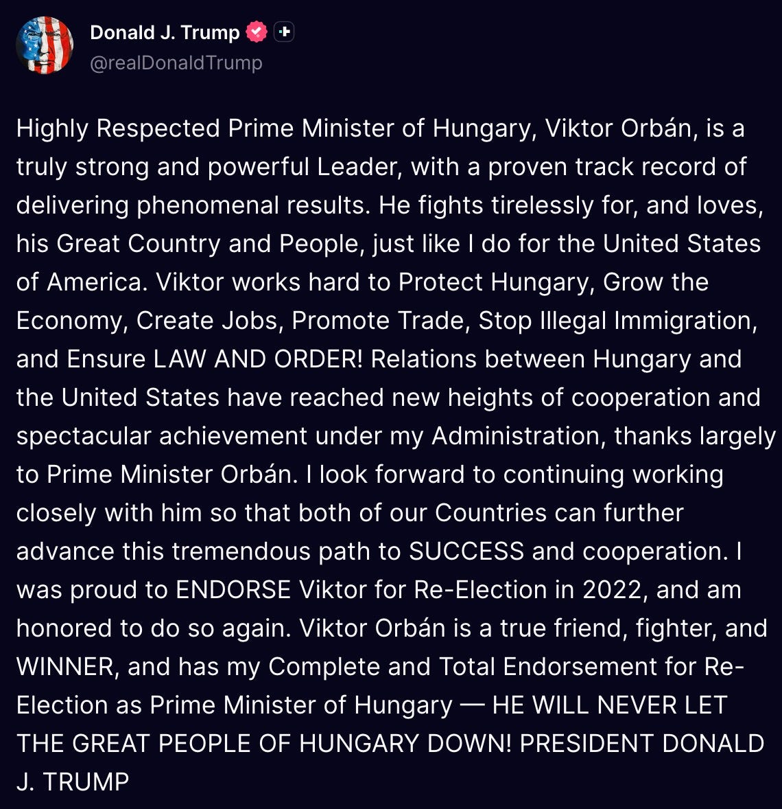 some fucking idiot started his Friday by endorsing his despot snugglebunny Viktor Orbán in his bid for reelection.