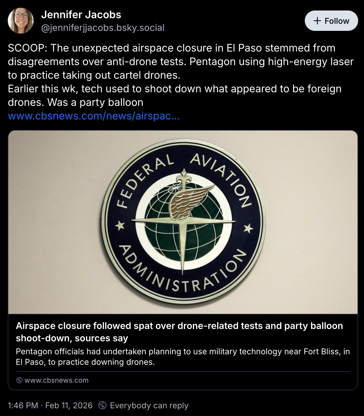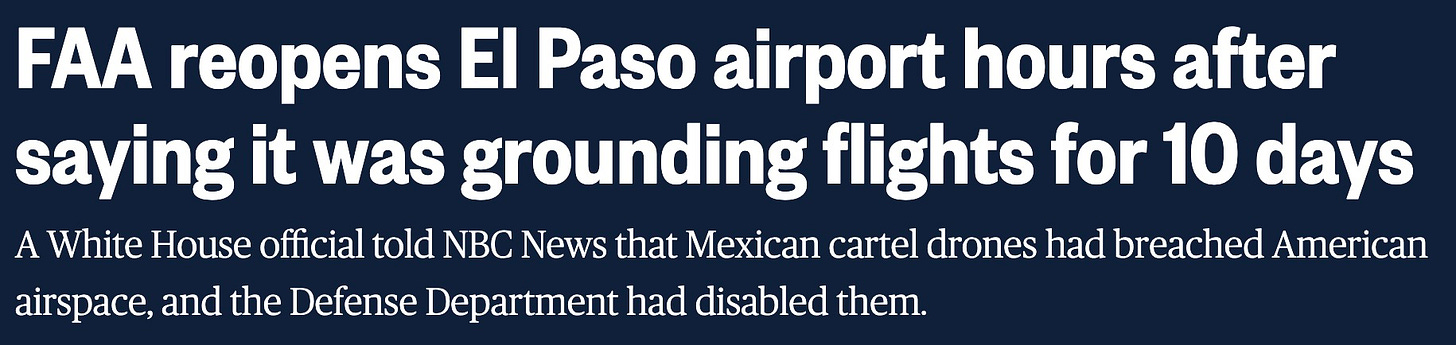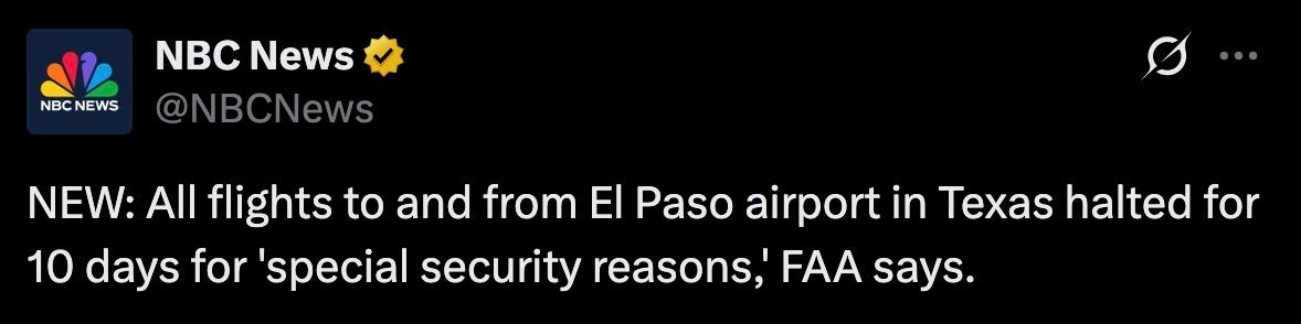 “NEW: All flights to and from El Paso airport in Texas halted for 10 days for ‘special security reasons,’ FAA says.”