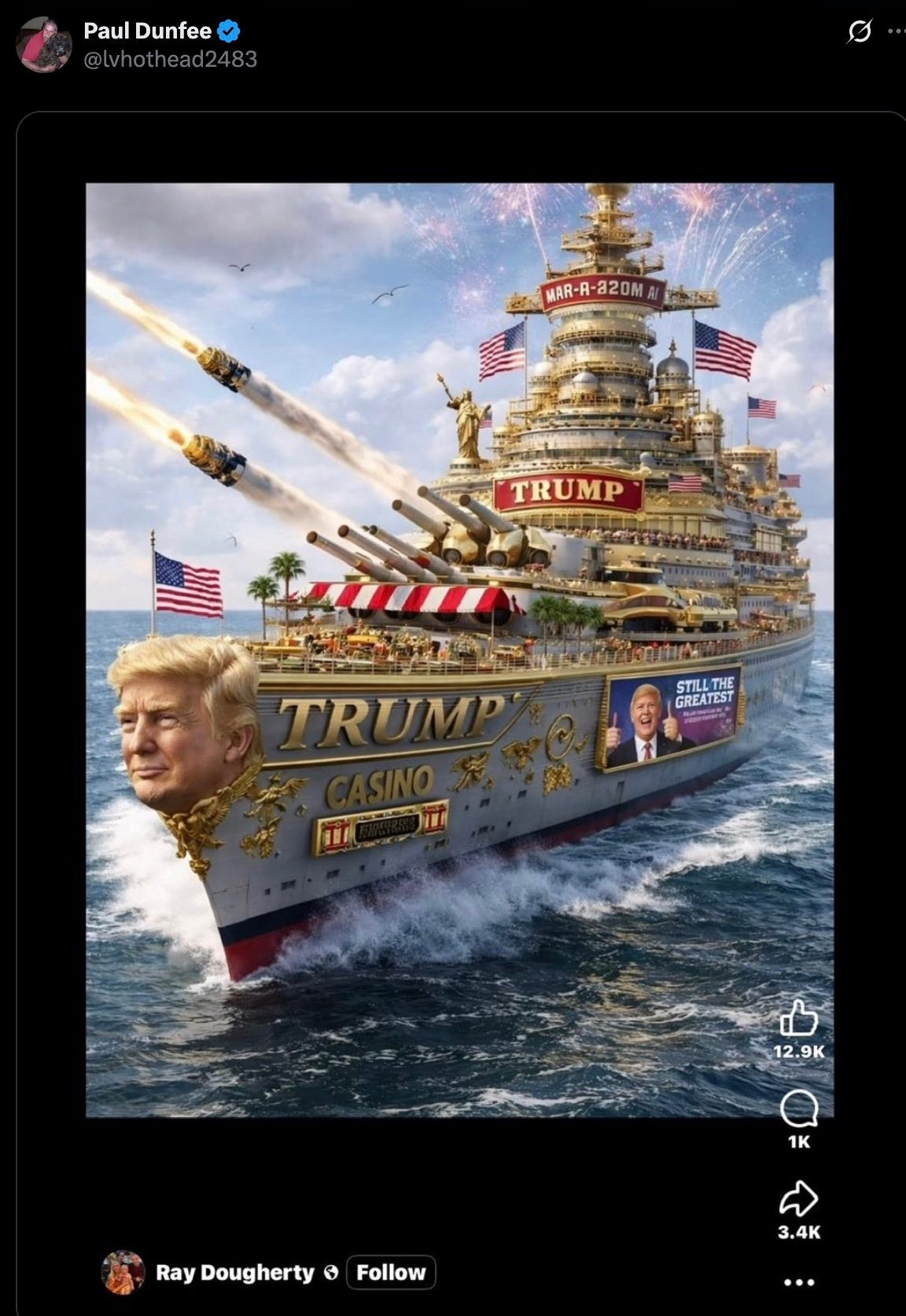 the fucking idiot then reminded us that he got to design his very own Big Boy Battleship, all by himself.